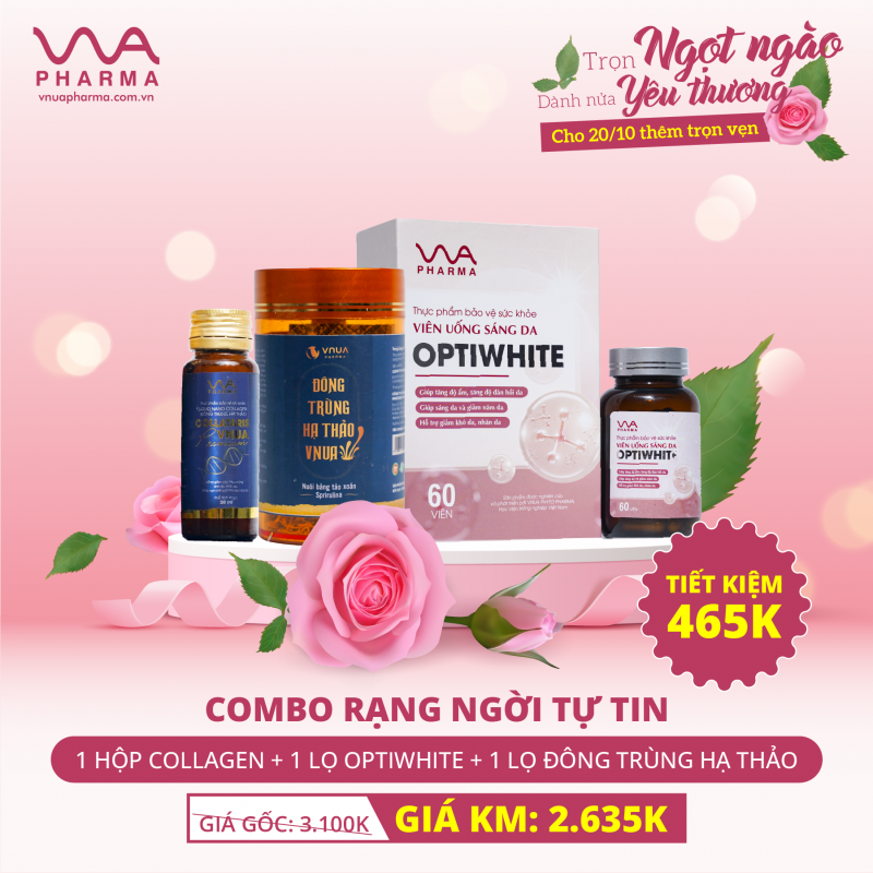 Combo rạng ngời tự tin Giá Gốc: 1 collagen + 1 Optiwhite + 1 đông trùng hạ thảo = 3.100k