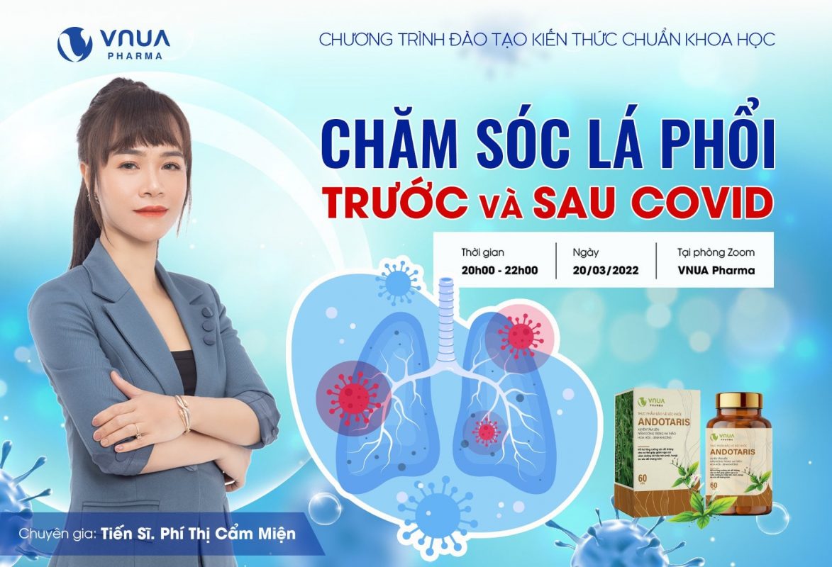 Chương trình đào tạo kiến thức chuẩn khoa học “Chăm sóc lá phổi trước và sau hậu COVID” được tổ chức vào ngày 20/03/2022 với sự hướng dẫn của CEO VNUA Pharma, Tiến Sĩ. Phí Thị Cẩm Miện.