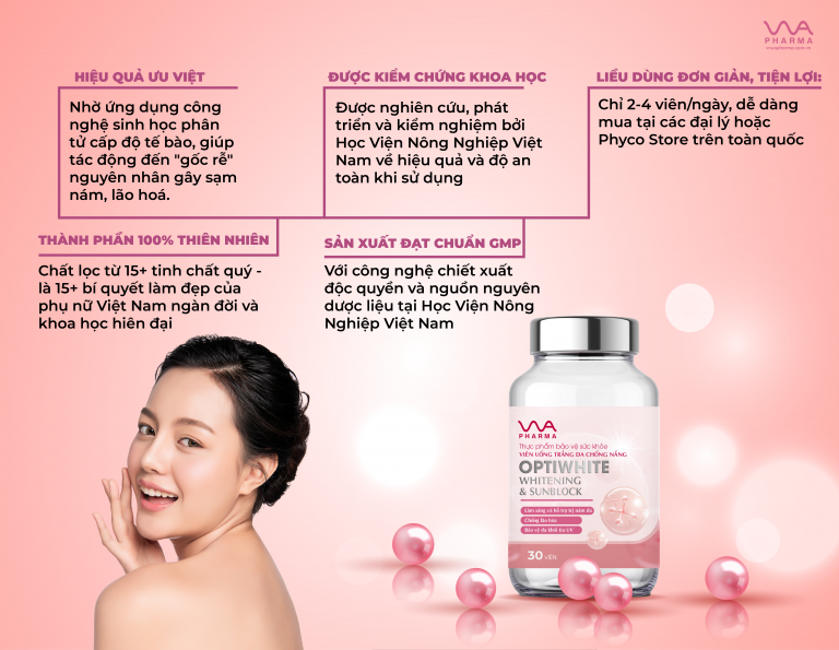 Viên uống trắng da Optiwhite VNUA Pharma là sản phẩm của công ty dược mỹ phẩm VNUA PHARMA. Được nghiên cứu theo công thức độc quyền của các GS.TS tại Học viện Nông nghiệp Việt Nam.