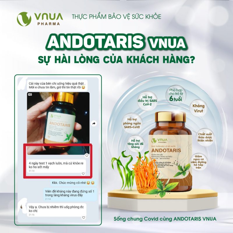 Còn gì vui hơn khi VNUA Pharma nhận được những lời đánh giá chân thực nhất của khách hàng về viên kháng virus Andotaris VNUA. Đó là niềm vinh dự và động lực to lớn giúp VNUA Pharma cố gắng hơn nữa trong việc nghiên cứu, sản xuất, tư vấn sản phẩm và giao hàng đến tận tay người tiêu dùng trên cả nước.