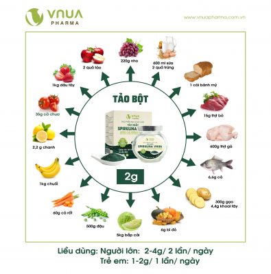 Hàm lượng dinh dưỡng khi sử dụng 2g tảo xoắn Spirulina