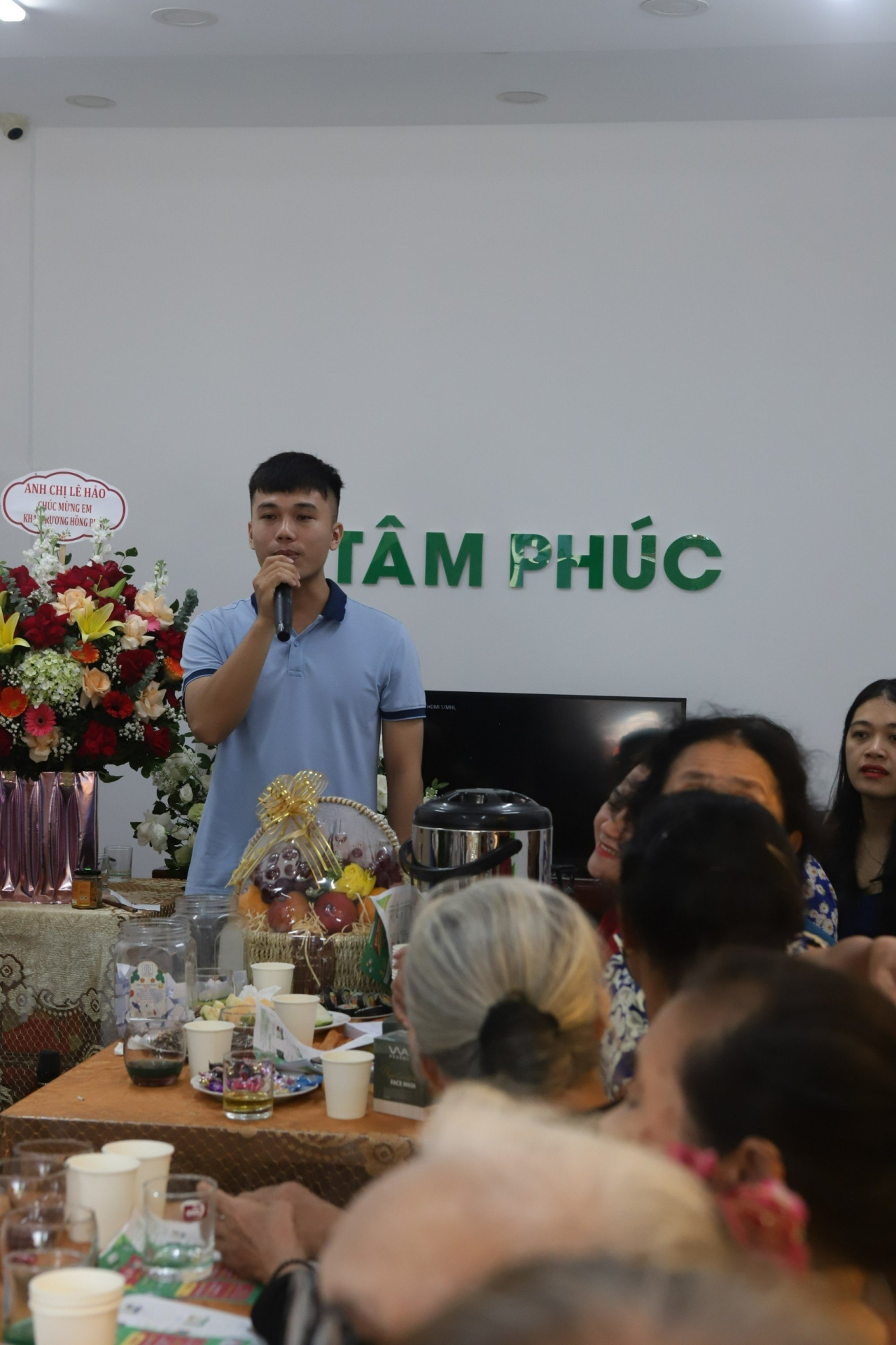 Anh Linh- chủ cửa hàng Phyco Store Tâm Phúc đang chia sẻ những cảm xúc,tâm huyết của mình đối với những khách hàng tin yêu của mình trong buổi lễ khai trương.