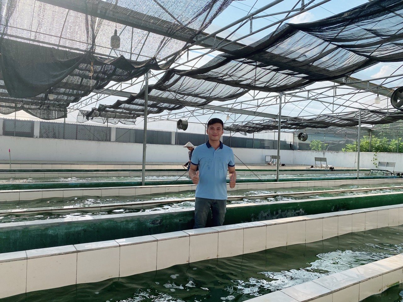Hình ảnh anh Linh tham quan khu nuôi trồng tảo xoắn Spirulina tại HVNNVN