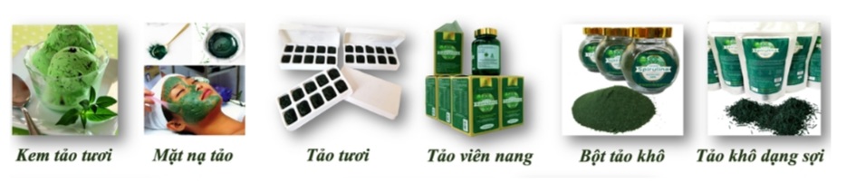3. Tảo xoắn Spirulina: Tảo tươi, bột tảo khô, tảo viên nang VNUA Gold, tảo khô dạng sợi,… Có công dụng chính tăng cường sức đề kháng, cung cấp đầy đủ chất dinh dưỡng cho cơ thể, chống oxy hóa, chống ung thư, cải thiện sức mạnh cơ bắp,…