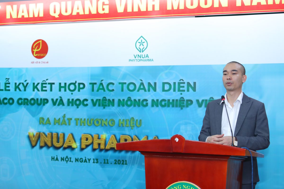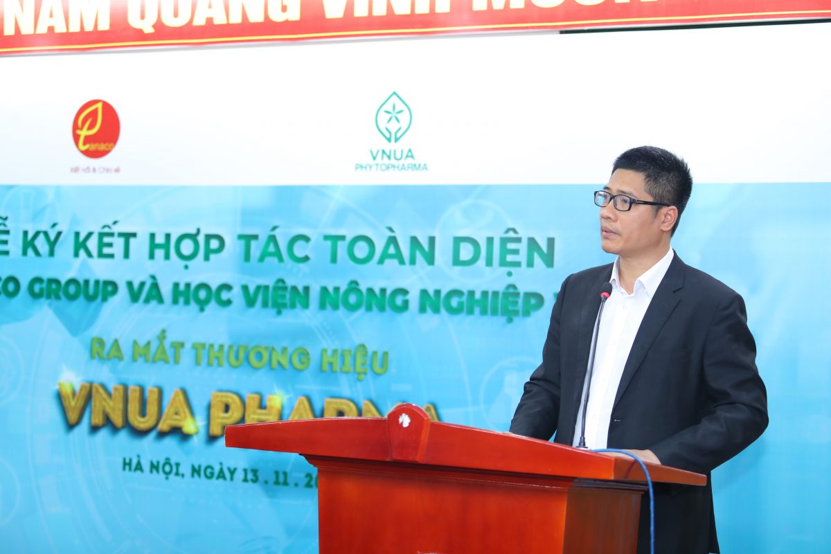 Cũng tại buổi ký kết, ông Nguyễn Đức Bách – Phó tổng GĐ VNUA Pharma, Giám đốc Viện nghiên cứu Vi tảo và Dược Mỹ phẩm phát biểu: “Học viện Nông nghiệp Việt Nam là một trong những học viện trọng điểm của quốc gia. Chúng tôi có thể mạnh về nghiên cứu, hơn 65 năm trong việc nghiên cứu khoa học công nghệ. Với phương châm là một đơn vị đào tạo, nghiên cứu, gắn kết xã hội cộng đồng nên HVNN Việt Nam đã thành lập các viện nghiên cứu gồm: viện nghiên cứu vi tảo và dược mỹ phẩm, viện nghiên cứu nấm ăn – nấm dược liệu. Đây là viện nghiên cứu quan trọng trong việc nghiên cứu và hỗ trợ, phát triển các sản phẩm phục vụ cho doanh nghiệp khoa học công nghệ. Lễ kí kết toàn diện giữa TANACO Group và Học viện nông nghiệp VN, đồng thời ra mắt thương hiệu VNUA Pharma. Đây là tín hiệu xây dựng trên tinh thần gắn kết khoa học công nghệ và nghiên cứu tạo ra những sản phẩm phục vụ cộng đồng và xã hội”.